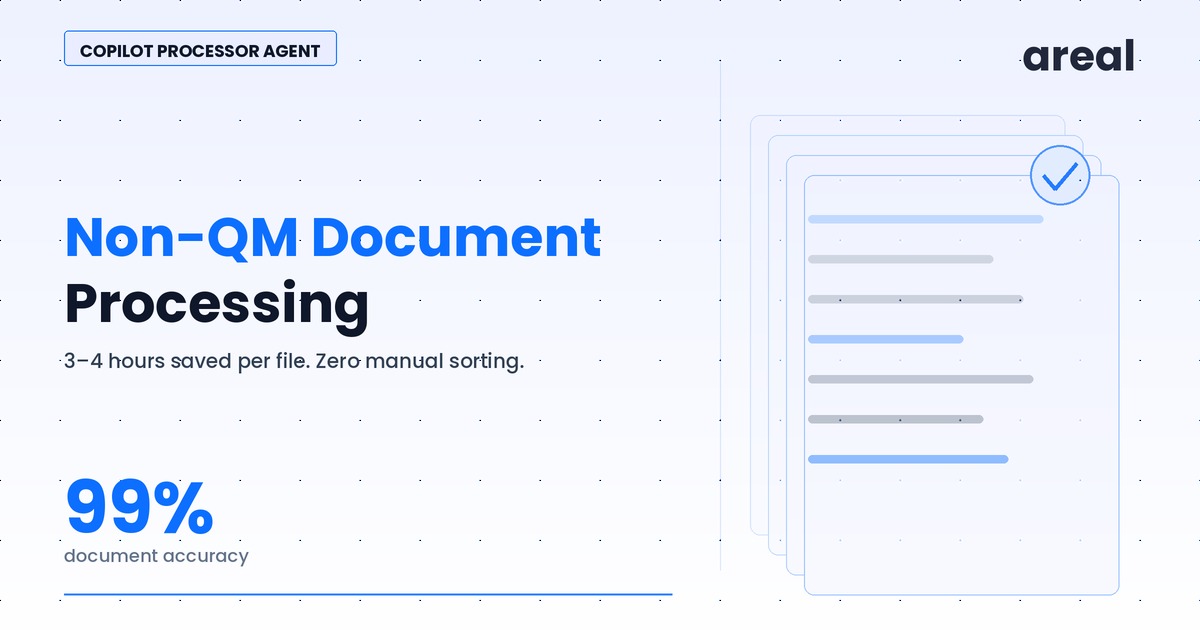 Areal's Copilot Closer Agent applies document AI to the funding checklist, running automated verification against every document in the package before the closer begins manual review.