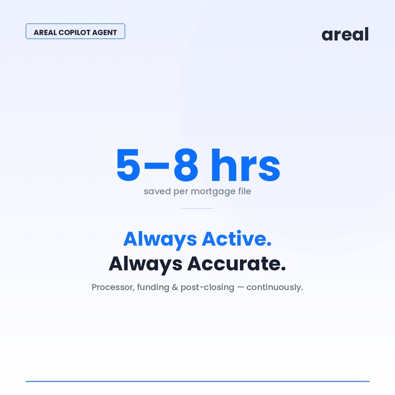 Areal's Copilot Closer Agent connects to your existing LOS and document management system. Implementation doesn't require replacing infrastructure — it layers automated verification on top of your current process.